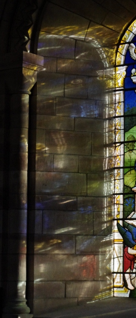Uncategorised Image of the Week #10 24th November 2012 / Earlier in the week, the sun shone through one of the stained glass windows in the Powis corner, at such an angle as to reflect beautifully on the stone wall.